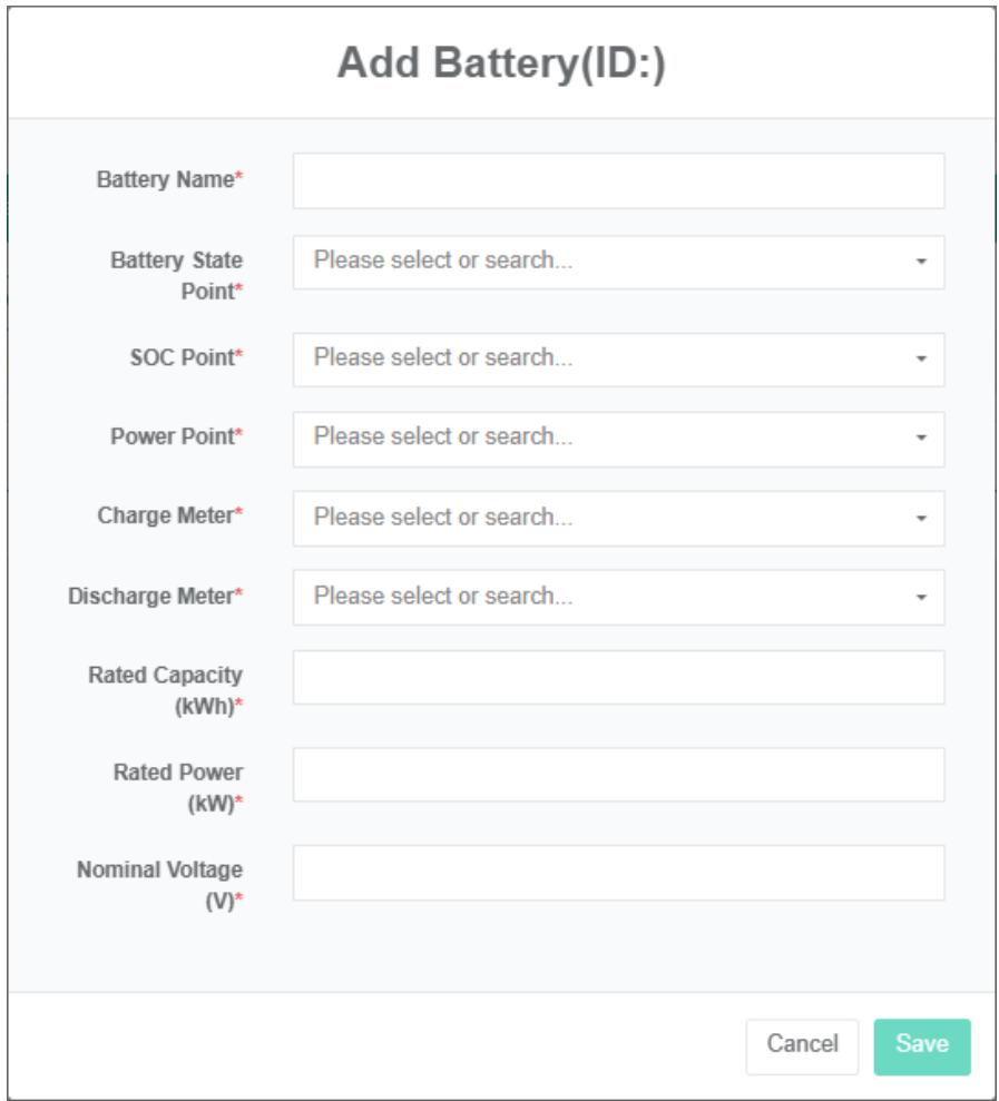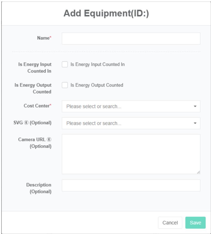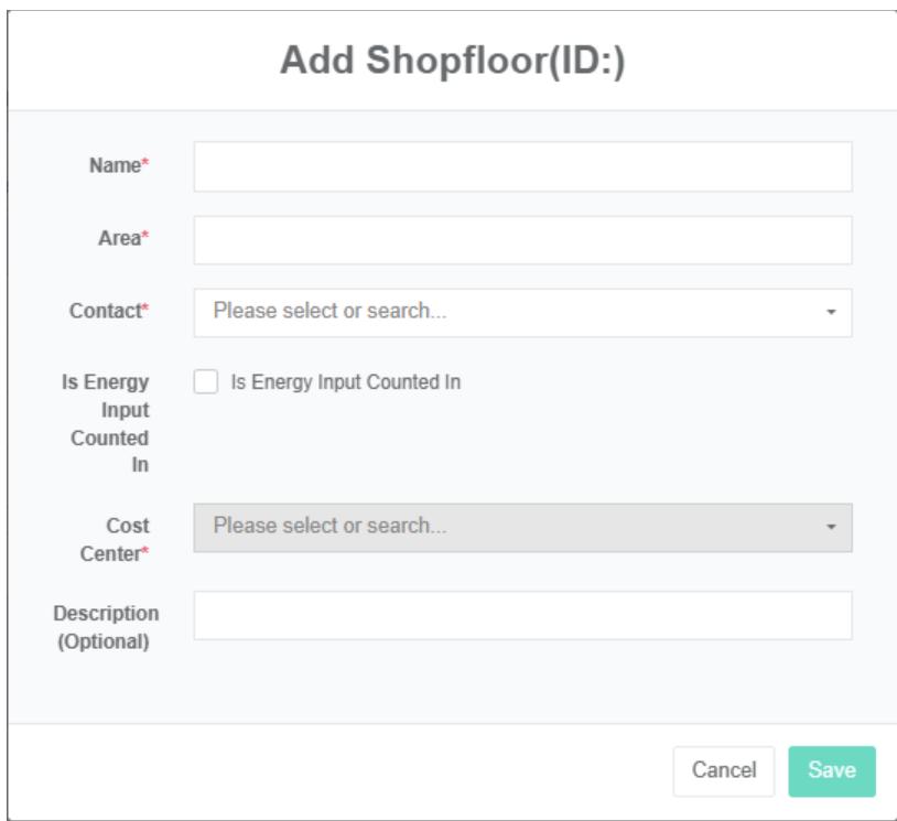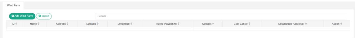 - Pada kotak dialog 'tambah ladang angin', masukkan nama, alamat, lintang, bujur, daya terukur, Kontak, Pusat biaya, SVG, dan deskripsi.