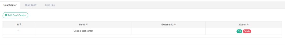 - Klik pada menu 'manajemen pusat biaya'