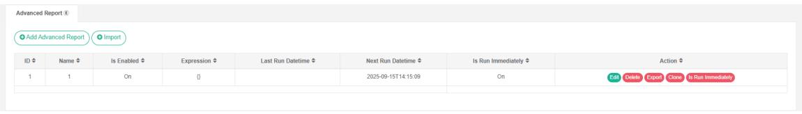Pada dialog "untuk menambahkan laporan lanjutan", masukkan "Nama", "Ekspresi", pilih "Aktifkan sakelar", "Jalankan segera" pada waktu berjalan berikutnya dan "Jalankan segera".