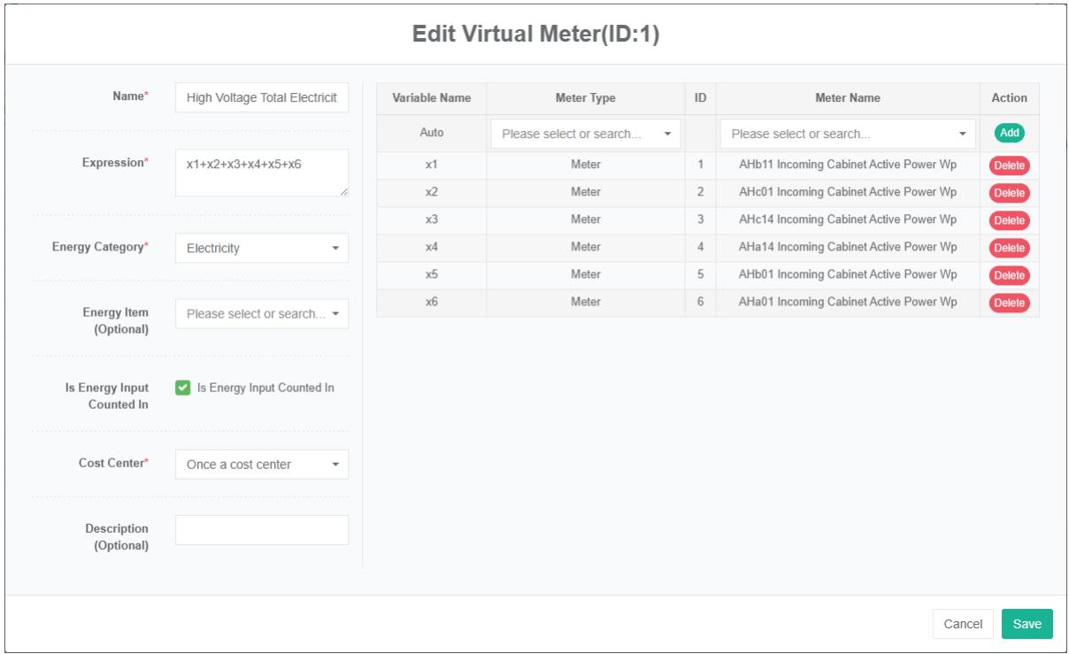- Masukkan 'nama', 'kategori energi', 'jenis tarif', 'unit', 'waktu mulai' dan 'waktu berakhir' di kotak dialog hak akses pengeditan.