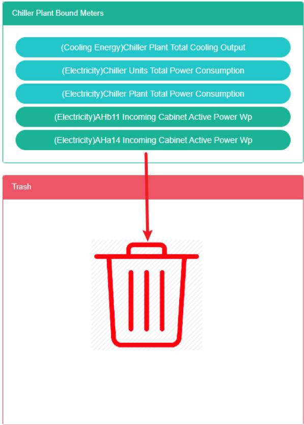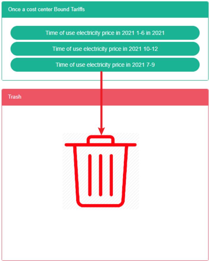 - Seret kotak tarif hijau ke 'ember daur ulang' merah di bawah.