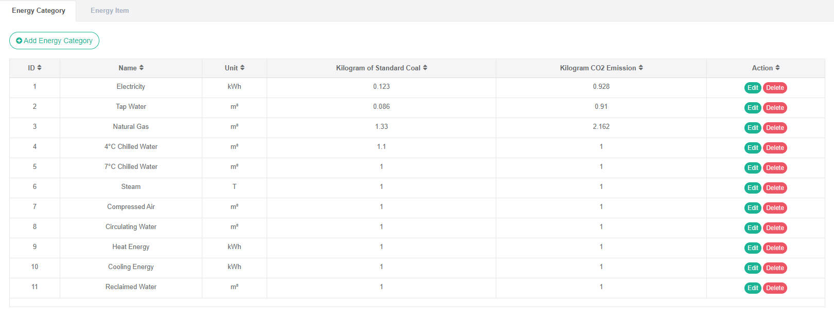- Klik pada menu 'manajemen kategori energi'