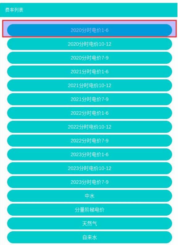 - 点击标签页‘能源费率’
