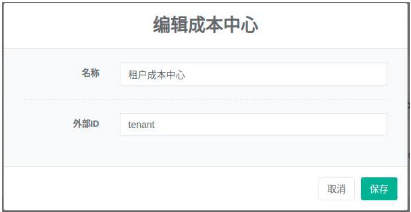 - 在‘编辑成本中心’对话框中输入‘名称’和‘外部ID’